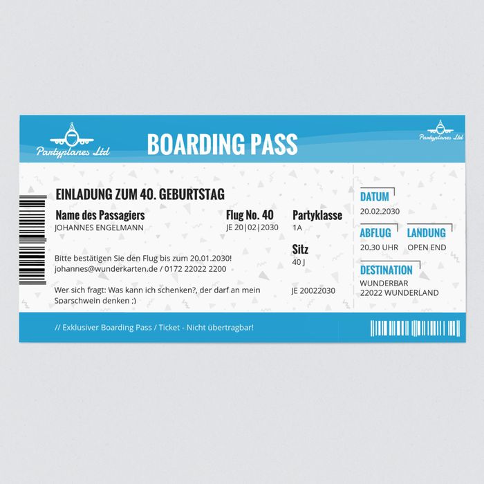 Flugticket einladungen zum geburtstag에 있는 kartenparadies.